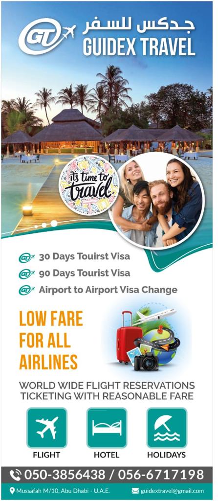 We have the great pleasure to introduce our travel agency Guidex Travel located in Mussafah M/10-Abu Dhabi-U.A.E. Guidex Travel we are deeply committed to making this experience an unforgettable one. Inspired by dynamism and vision, Guidex Travel lays the greatest emphasis on the quality of travel aimed at total client satisfaction. Our professional approach focuses on personal preferences and personalized services to make the traveler feel at home far away from home. We rely on the most advanced travel concepts and technologies to accommodate the fast-changing trends in world travel.