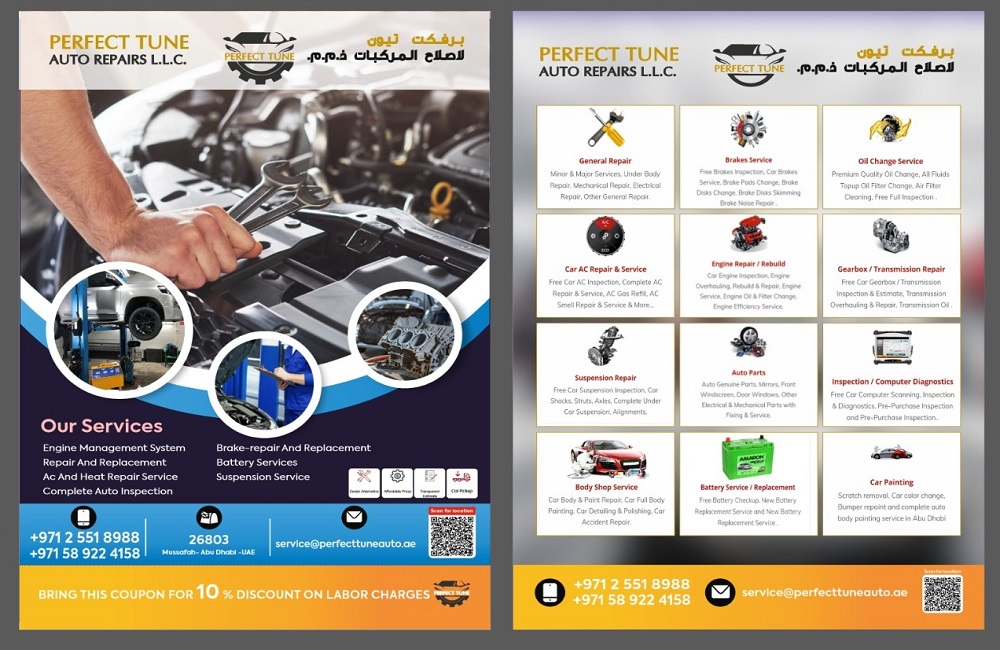 Perfect Tune Auto Repair Workshop L.L.C is located in Musaffah M/37 - Abu Dhabi-U.A.E. We provide professional auto repairs with a focus-friendly and skilled service that’s tailored to you and your car and we provide ourselves with a commitment to your safety and your budget from normal service, we take the utmost care to complete into the highest standard, we are synonymous throughout the areas as the place to visit for affordable prices and leading brand repairs. We service all makes and models of cars to the manufacturer’s standards and specifications, adopting complete dealership techniques. We do not compromise on safety and quality.