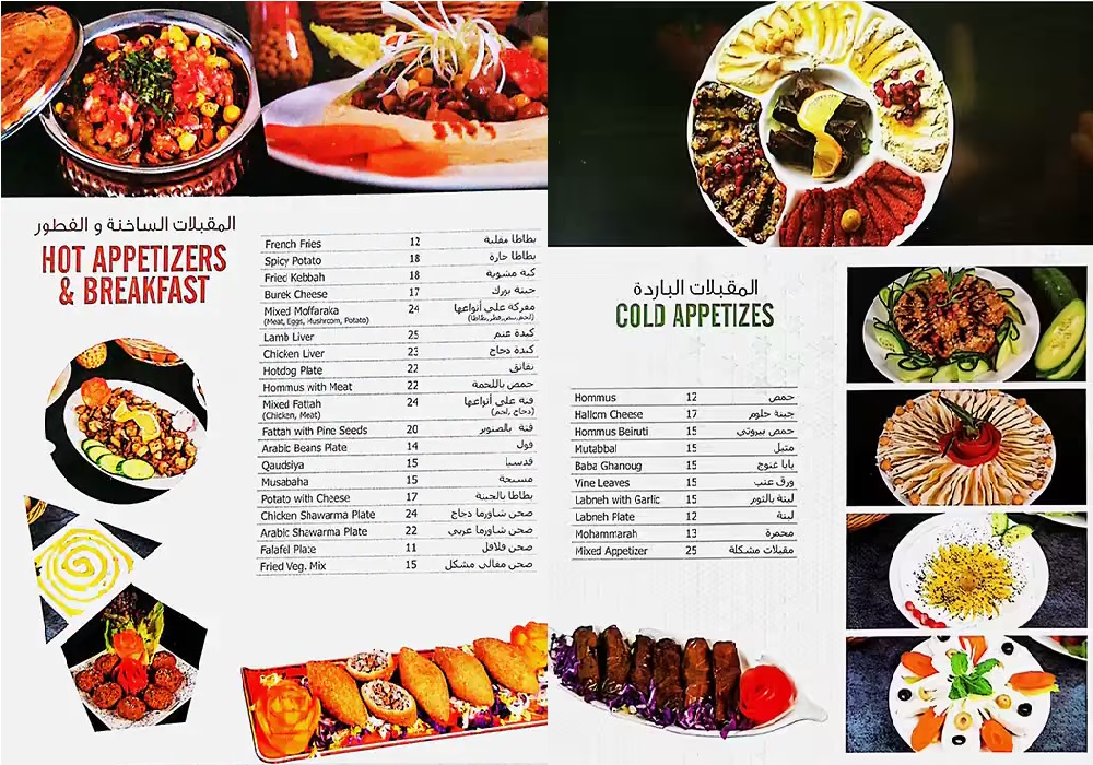 ★ Hookah, Pasteries, Daily Cooking Meals, Sandwiches, Western & Syrian Dishes, Seafood, Barbeque, Hot Appetizers And Breakfast Dishes, Cold Appetizers, Soups & Salad, etc available★