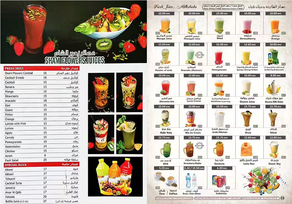 Sham Flowers Restaurant is located in Mussafah M/2-Abu Dhabi- UAE, serving a selection of all types of food, Pasteries, Daily Cooking Meals, Sandwiches, Western & Syrian Dishes, Seafood, Barbeque, Hot Appetizers And Breakfast Dishes, Cold Appetizers, Soups & Salad, etc that delivers across Mussafah. Each and every item on the menu is of great taste and cooked fresh. The place is enchanting. On one hand, the lovely strong coffee is simply addictive, and on the other the delicate scent of freshly ground spices. Some of their delicacy items and other extensive vegetarian offerings are soul-satiating